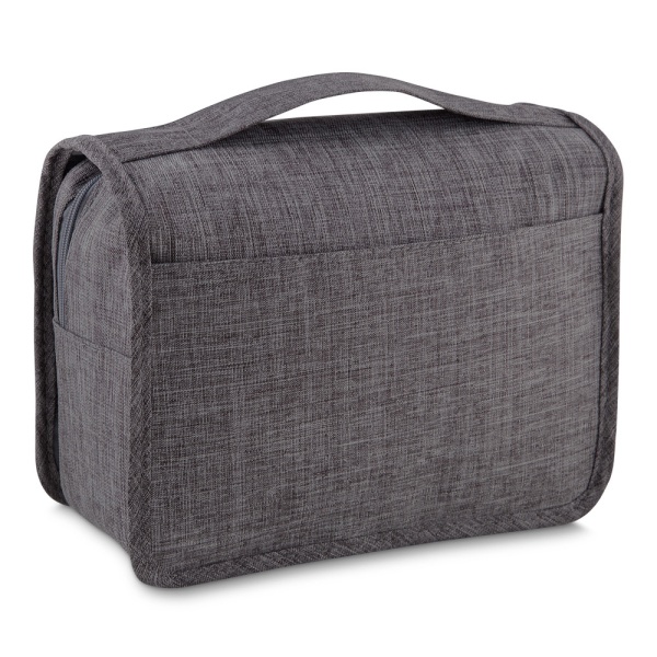 Necessaire em tecido polyester, com excelente espaço interno, bolso frontal e no verso. Suporte para pendurar.