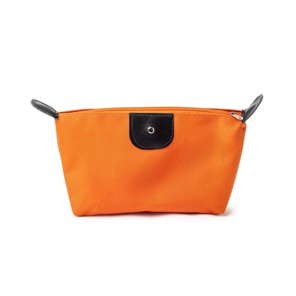 Nécessaire em tecido nylon oxford, resistente a água com detalhes em couro sintético e parte interna com revestimento emborrachado, elegância e simplicidade no mesmo item. Possui um detalhe circular brilhante no couro frontal.