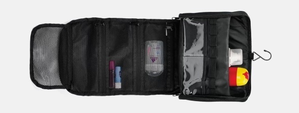 Confeccionada em polyester preto, conta com duas alças de mão para transporte, possui 11 divisórias internas em elásticos, 2 compartimentos em PVC, quatro bolsos em tela fechados com zíper e gancho preto em metal para pendurar. (imagem ilustrativa, não acompanha outros produtos) Dimensões do produto: 27x20x12cm Embalagem: Plástica Dimensões da embalagem: 180x270x130 mm (AxLxP) Peso da embalagem: 355 g