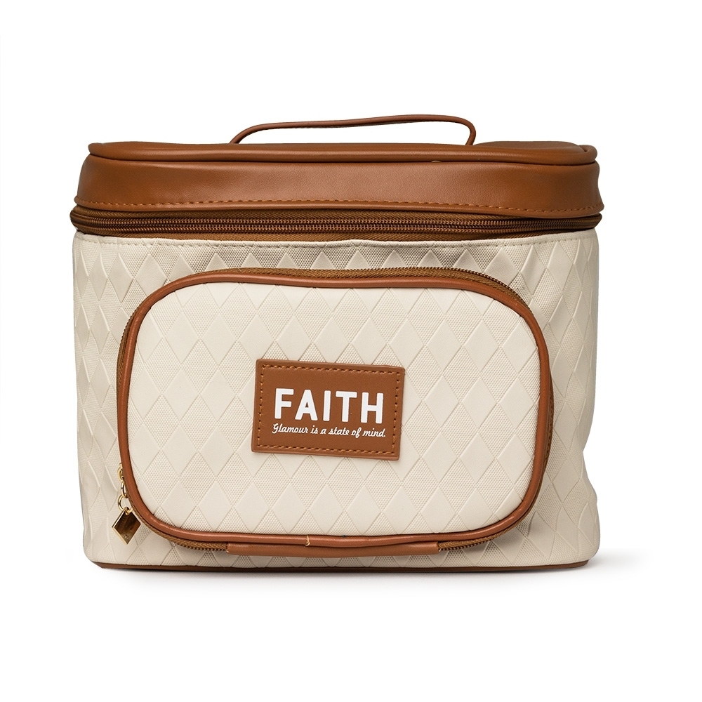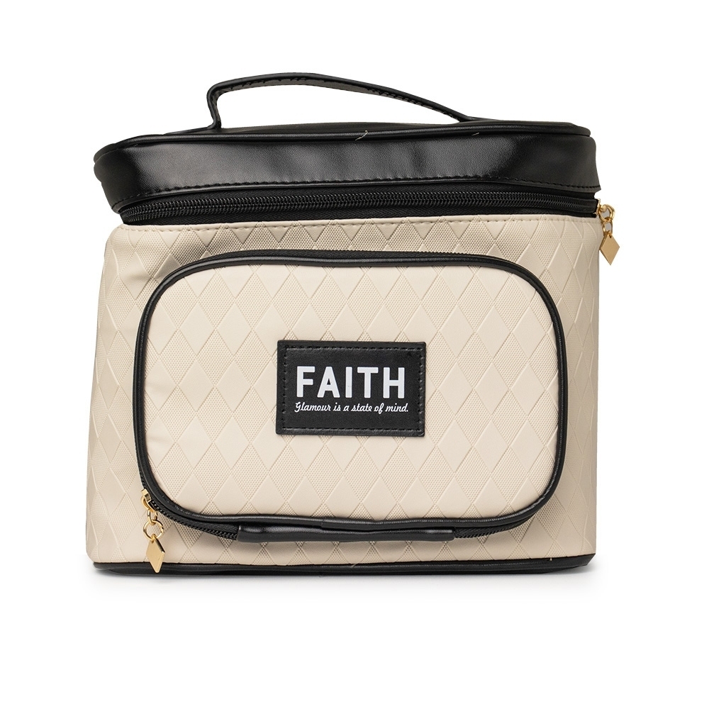 A combinação perfeita entre delicadeza e qualidade, esta nécessaire agradará até mesmo as pessoas mais exigentes. Feita de PU resistente à água, cada detalhe foi meticulosamente pensado para torná-la prática: um compartimento principal com 5 divisórias para pincéis e amplo espaço para diversos cosméticos, além de um compartimento frontal com vários organizadores para joias como anéis, brincos e colares. Com zíperes de puxadores dourados, cada detalhe torna esta nécessaire uma peça sofisticada e funcional.