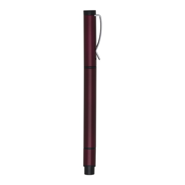 Pacote com 50 peças da caneta metálica com marca texto e carga esferográfica azul 1.0mm, ambas com tampas protetoras.