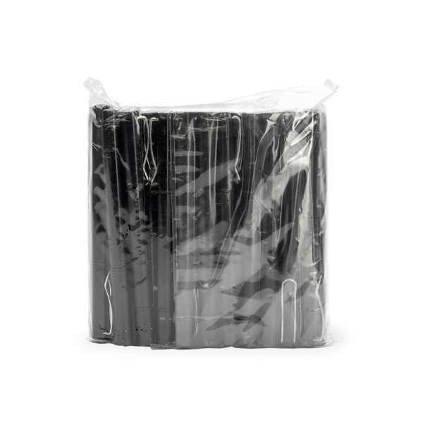 Pacote com 50 peças da caneta plástica com marca texto amarelo e carga esferográfica azul 1.0 mm, ambas com tampas protetoras.