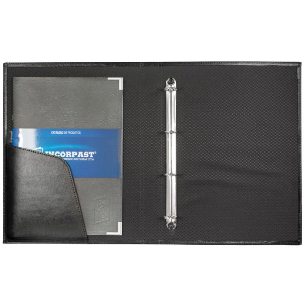 A Pasta Arquivo Incorpast garante mais proteção para seus arquivos, pois é fabricada com material resistentes e durável! A Pasta Arquivo Incorpast é perfeita para organização em escritórios, lojas, indústrias e distribuidoras, pois ocupam pouco espaço e facilitam o seu dia a dia. Ela possui 1 bolsa interna e ferragem 4 argolas. Você pode adquirir sua Pasta Arquivo com: 50 envelopes plásticos 16132; sem envelope plástico 16131. Personalize sua Pasta Arquivo de acordo com a sua necessidade incluindo porta caneta, aba interna, porta cartão e visor de identificação. Deixe seu produto ainda mais profissional com sua Logo gravada em Serigrafia ou Baixo Relevo!