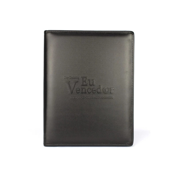 | Características | • Produto Artesanal Fabricado no Brasil • Revestimento em Couro Sintético • Costurado • Almofadado • Bolsa Interna • Fechamento em Zíper • Caneta não inclusa |