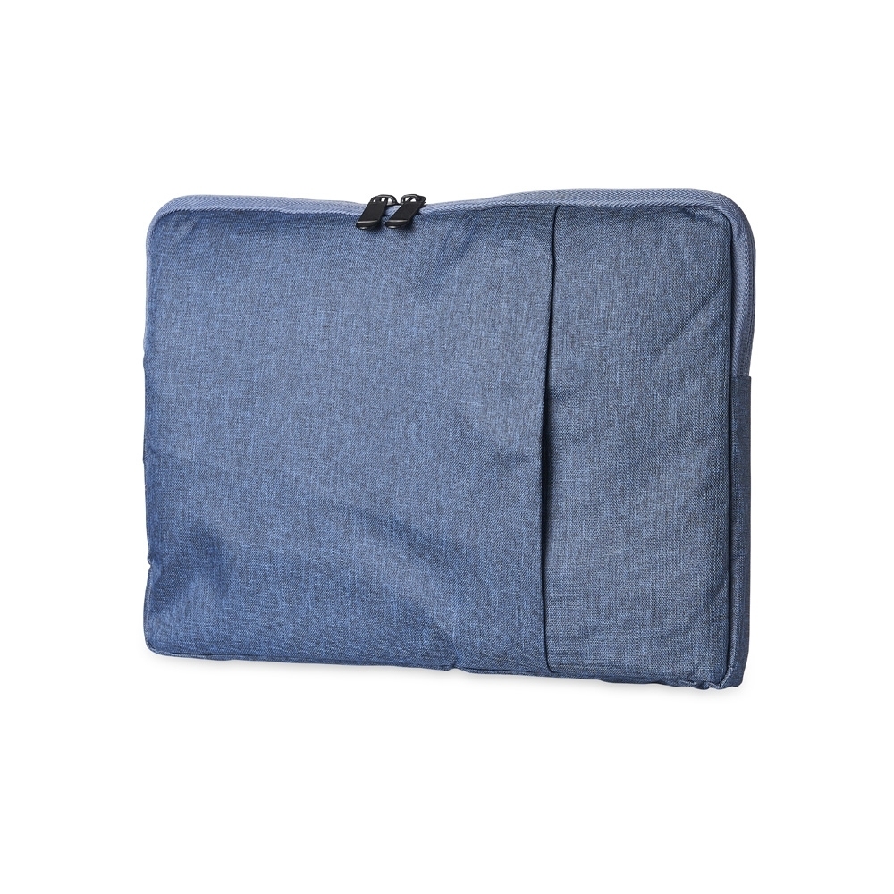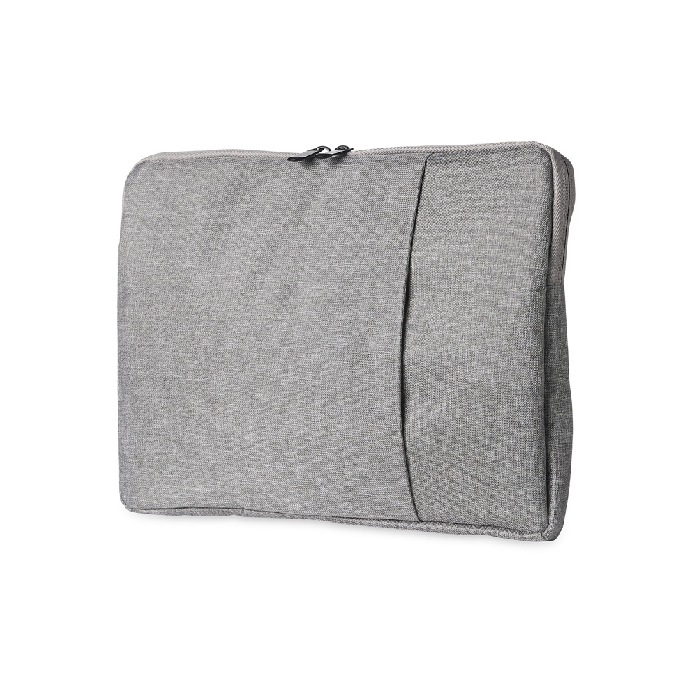 Pasta para notebook 14 em poliéster resistente à água com dois compartimentos, sendo o principal com interior forrado e almofadado.