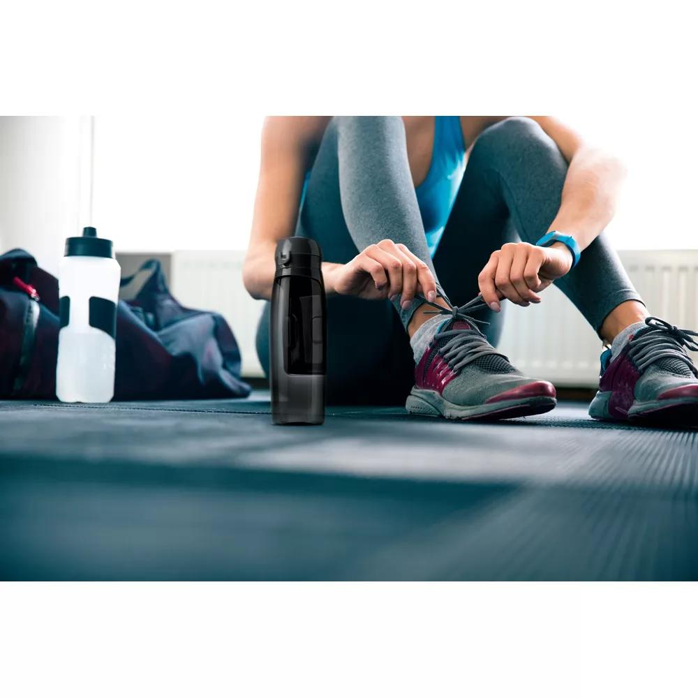Squeeze em Tritan™ com tampa flip top em PP, compartimento em ABS para cartões, chaves e dinheiro. Capacidade até 800 ml. Food grade. Caixa branca 94658 vendida opcionalmente. ø80 x 260 mm