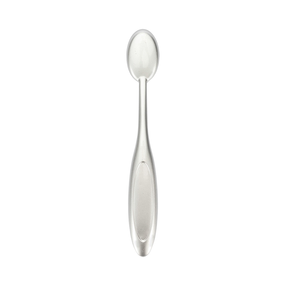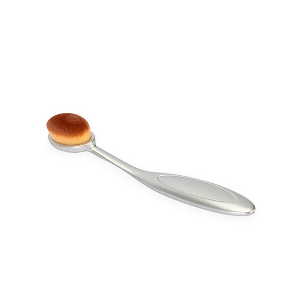 Pincel de maquiagem com design do tipo escova em plástico. Possui cerdas macias dispostas em formato oval, ideal para a aplicação suave de bases líquidas ou em creme.