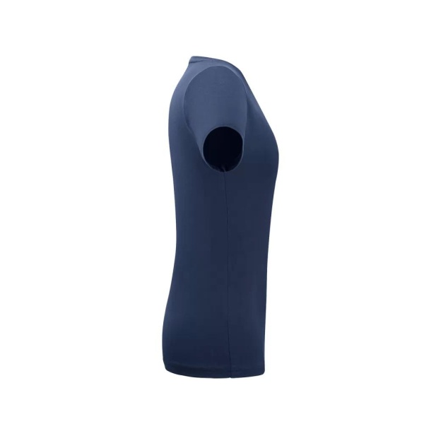 Camiseta feminina de corte cinturado em malha 100% algodão (170 g/m2) com fio 30/1 penteado. Com gola em ribana 1×1 com fita de reforço e com costura dupla nas mangas, barra de fundo e laterais. Tamanhos: P, M, G, GG