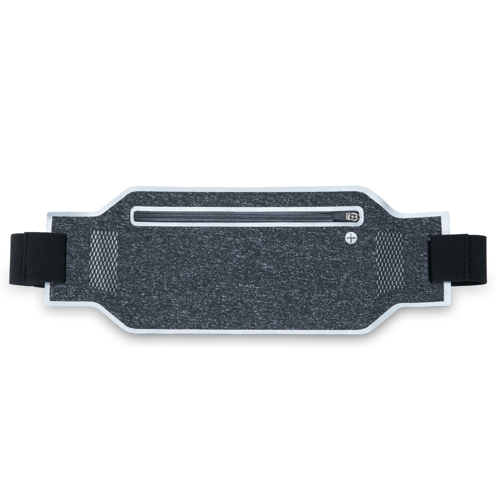 Pochete anti-furto esportiva. Confeccionada em lycra impermeável, a pochete possui um formato slim que permite a utilização por dentro da roupa sem causar volume, aumentando a possibilidade de não ter seus pertences furtados. Ideal para práticas esportivas, a pochete possui saída para fone de ouvido, cinta elástica ajustável com fivelas, saídas laterais para circulação de ar e contornos reflexivos. Contém um zíper selado que impossibilitada a infiltração de água, seu compartimento interno possui uma divisória para separação do celular e itens que possam vir à riscá-los.