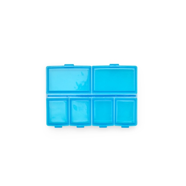 Um porta comprimidos na medida certa para dar mais possibilidades de organização em uma rotina de cuidados. Feito plástico, possui ao todo seis compartimentos, sendo dois maiores com capacidade de até 15 ml e outros quatro menores com 10 ml ao todo. Tudo isso garante mais opções de arranjos para armazenar comprimidos de maneira ordenada e eficiente.
