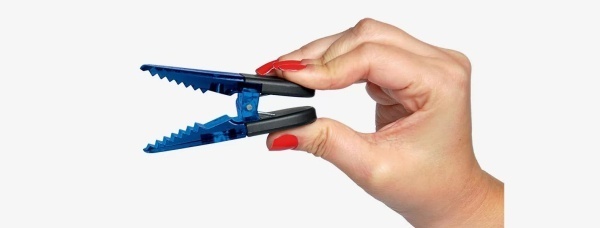 Confeccionado em poliestireno azul, possui dentes ziguezague, mola em metal, detalhe superior antiderrapante em plástico preto e um imã atrás para pendurá-lo em superfícies metálicas. Dimensões do produto: 8,5x3cm Embalagem: Saco Plástico Prata Dimensões da embalagem: 85x40x30 mm (AxLxP) Peso da embalagem: 40 g