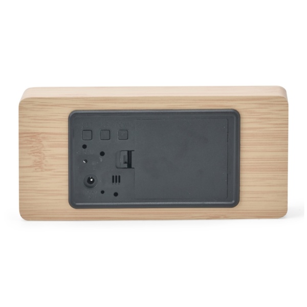 Este relógio despertador de madeira com painel de LED une, de forma harmoniosa, a tecnologia do display com o design requintado do corpo do aparelho. Com ele, é possível visualizar a hora certa, além de outras informações como data e temperatura ambiente. Apresenta, também, a opção de programar até três alarmes diferentes, definindo seus horários e frequências de ativação. Além disso, o relógio despertador pode ser ligado tanto através de 4 pilhas AAA (não acompanham o produto) quanto via cabo USB DC de 5V que acompanha o dispositivo.