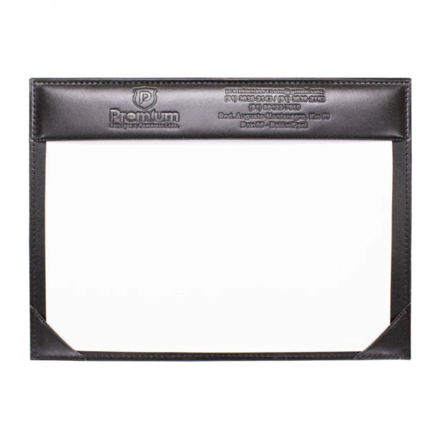| Características | • Produto Artesanal Fabricado no Brasil • Revestido em Couro Sintético • Costurado • Para papel tamanho A4 |