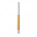 Roller em aço inox 90% reciclado e bambu com tampa. Escrita em azul. Fornecido em bolsa oferta em papel de bambu. A cor e o resultado da impressão nos materiais naturais pode variar entre produtos. ø11 x 137 mm | Bolsa: 40 x 155 mm