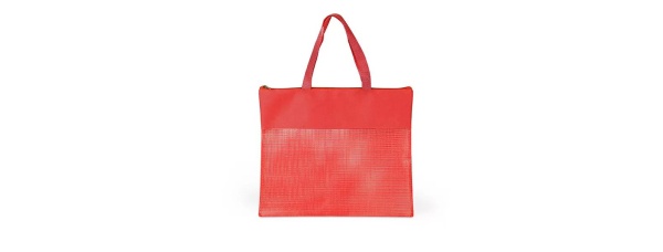 Sacola de mão em Nylon 600 e tela Sanet vermelho. Conta com alça e fechamento em zíper. Dimensões do produto: 33,5×28,5cm (com alça 33,5×44,5cm) Embalagem: Plástica embalada de 10 em 10 Dimensões da embalagem: 335x285x0 mm (AxLxP) Peso da embalagem: 60 g