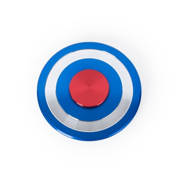 Spinner antiestresse escudo, material metálico. Com rolamento central, possui frente com detalhe espiral e verso com detalhe circular prata. Acompanha estojo metal com visor na tampa, parte interna revestida de espuma.