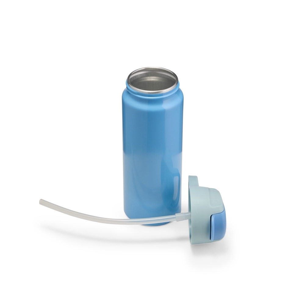 Um squeeze de alumínio de design prático que deixa a rotina de hidratação mais ágil. Com capacidade máxima de até 600ml, o squeeze possui uma tampa e um bico flexível de plástico acoplado a um canudo do mesmo material. Além de contar com o uma alça fixa na tampa, o bico é protegido por uma tampa própria, evitando vazamentos e o contato direto com a sujeita, garantindo maior higiene ao squeeze.