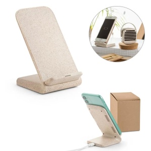 Suporte em inox espelhado, ideal para apoiar celulares em superfícies planas.