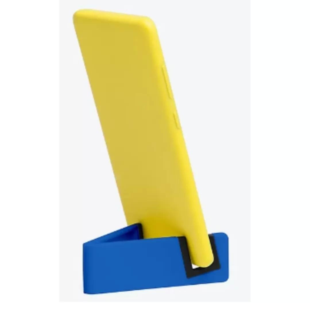 Suporte para celular preto em ABS e TPR. Pode ser usado com o celular tanto na vertical quanto na horizontal. Disponível nas cores: branco, preto, azul, vermelho e verde.